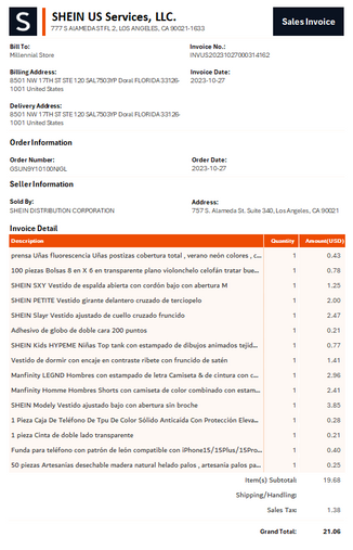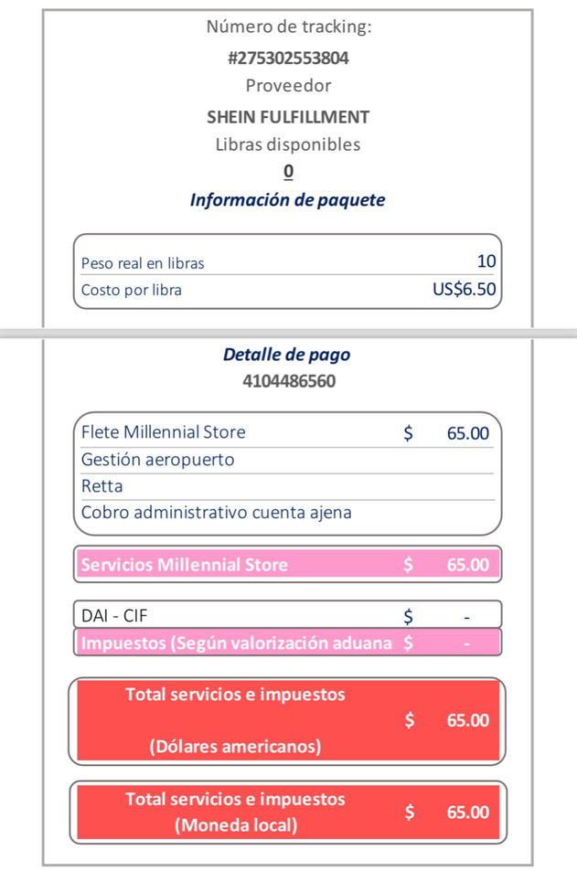 Ejemplo: factura de cualquier monto con un peso de 10 libras.